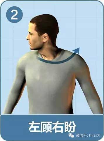 頭向左轉(zhuǎn)90度,停留3秒,再向右轉(zhuǎn),停留3秒。做兩個8拍。