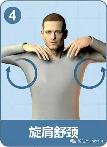 雙手置兩側(cè)肩部,掌心向下,兩臂先由后向前旋轉(zhuǎn)20、30次,再由前向后旋轉(zhuǎn)20-30次。