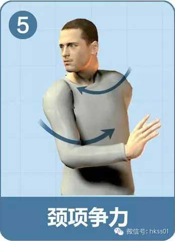 雙手交叉緊貼頸后,用力頂頭頸,頭頸向后用力,互相抵抗5次。