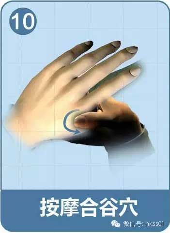合谷穴在大拇指和食指中間的虎口處,把拇指 和食指分開,用另一手的大拇指經(jīng)常按摩該處。