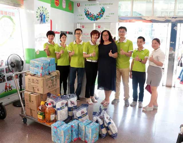 除了送中秋月餅,盛世家人考慮到老人不宜多吃月餅,于是貼心地送了大米,食用油,維他奶,咱盛世家人就是實在。
