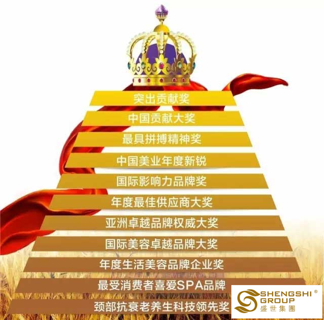 盛世品牌憑借卓越的品質,獲美業權威機構、專家、廣大消費者的一致認可;曾榮獲“2016年度生活美容品牌企業獎”,“2016年度最佳供應商大獎”,“2015中國貢獻大獎”,“2014亞洲卓越品牌權威大獎”,“2013最受消費者喜愛品牌獎”等。